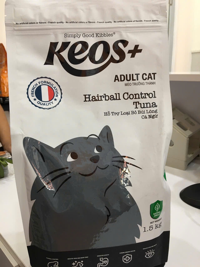 Thức ăn KEOS+ Hairball Control Tuna với hàm lượng chất xơ cao sẽ làm giảm sự tích tụ của búi lông trong đường tiêu hoá và sự hình thành các cục búi lông.
