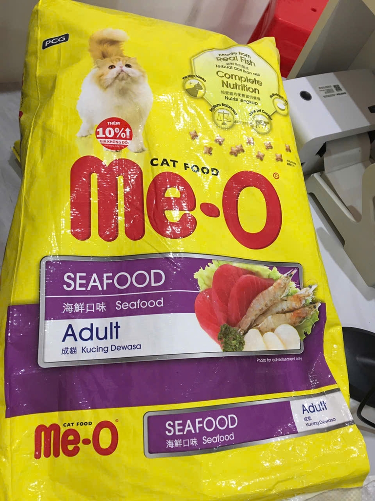 Thức ăn mèo ME-O Seafood - Hương vị Hải sản, dành cho mèo trưởng thành.