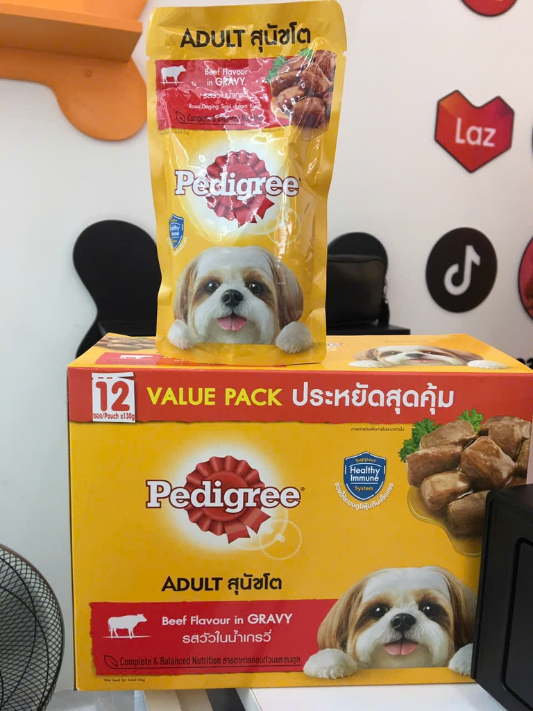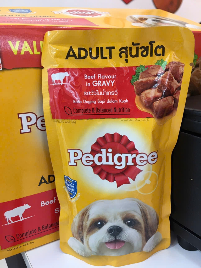 Các sản phẩm thức ăn chó mèo Pedigree có hàm lượng dinh dưỡng đầy đủ cho chó mèo khỏe mạnh. Nếu chó của bạn đã chán ngán với những loại thức ăn hạt thông thường, bạn hãy thử đổi vị bằng loại Thức Ăn Cho Chó Lớn Dạng Sốt Pedigree – Vị Bò Nấu Sốt Túi 130gr này thử nhé, đảm bảo chú cún của bạn sẽ thích mê